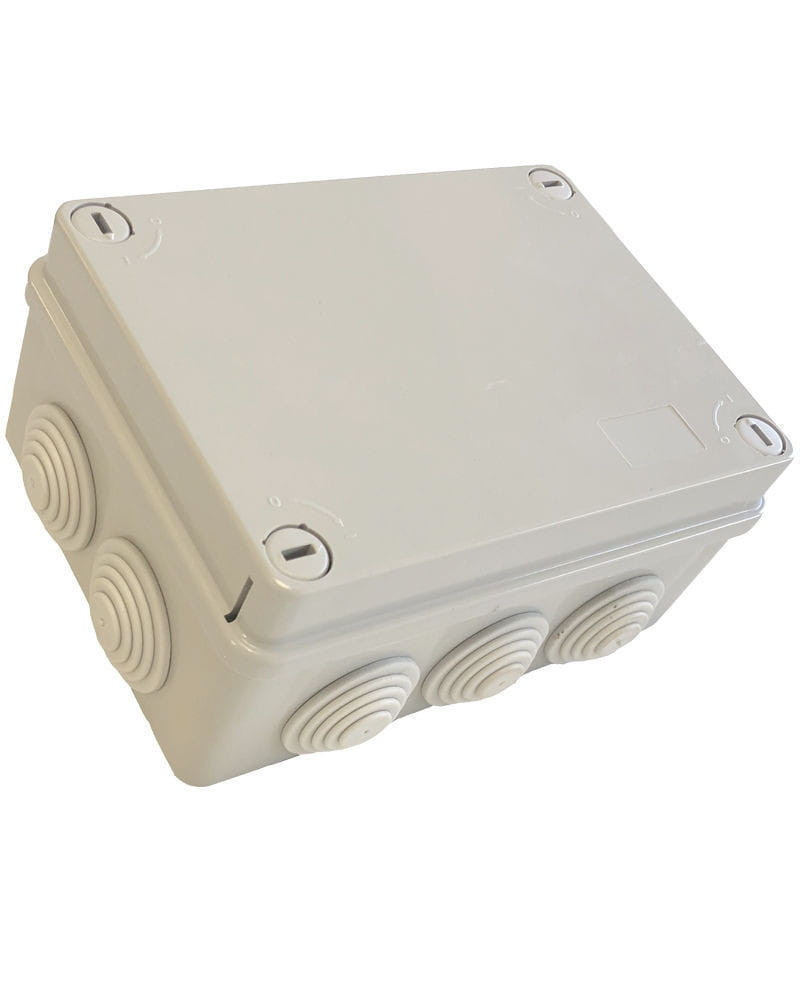 A caixa estanque deve ser colocada mais próxima dos painéis solares e aqui reunir todos os cabos que vêm dos painéis solares. A partir deste ponto sairá apenas um cabo positivo e um negativo. Esta caixa impermeável é perfeita para encapsular o distribuidor de corrente.