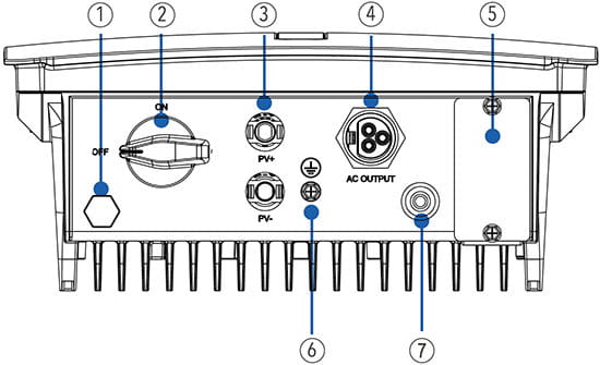 Quanto às suas portas de comunicação, incorpora conectividade WIFI integrada. Sua conexão RS485 é opcional e está integrada a uma placa que é inserida no inversor.