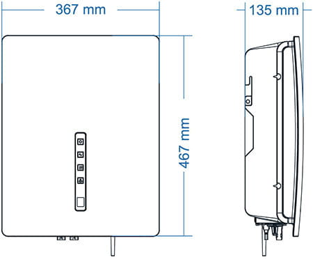 O inversor de rede RIELLO Sirio RS 5000W possui alta eficiência de conversão, até 97,1% e possui consumo mínimo de referência da rede para inicialização e trabalho normal. São fabricados sem transformador e sem peças móveis como ventiladores para reduzir peso e manter baixo nível sonoro, abaixo de 30dBA quando em funcionamento.