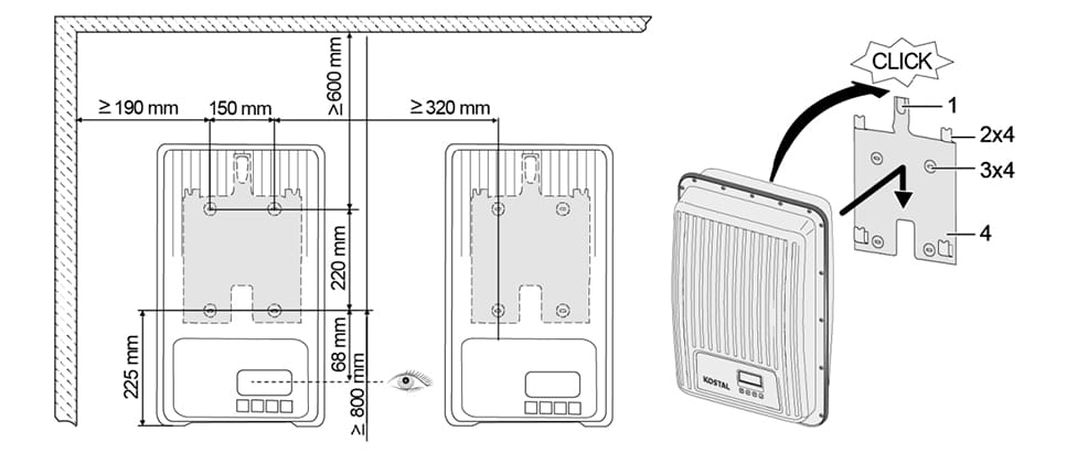 Os passos a seguir para a correta fixação do inversor Kostal Piko 4.6-2 MP Plus 4.6kW são:
