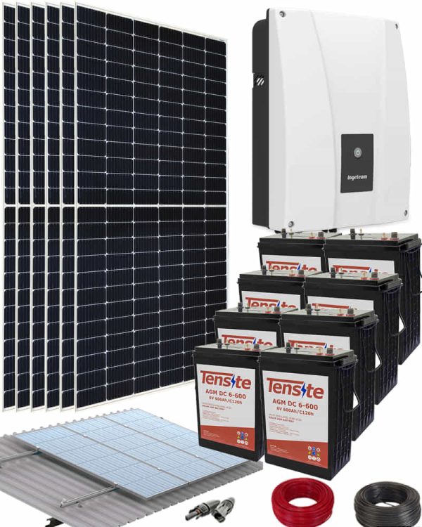 Componentes do Kit Solar Autoconsumo Baterias 3000W 54V 17600Wh dia
