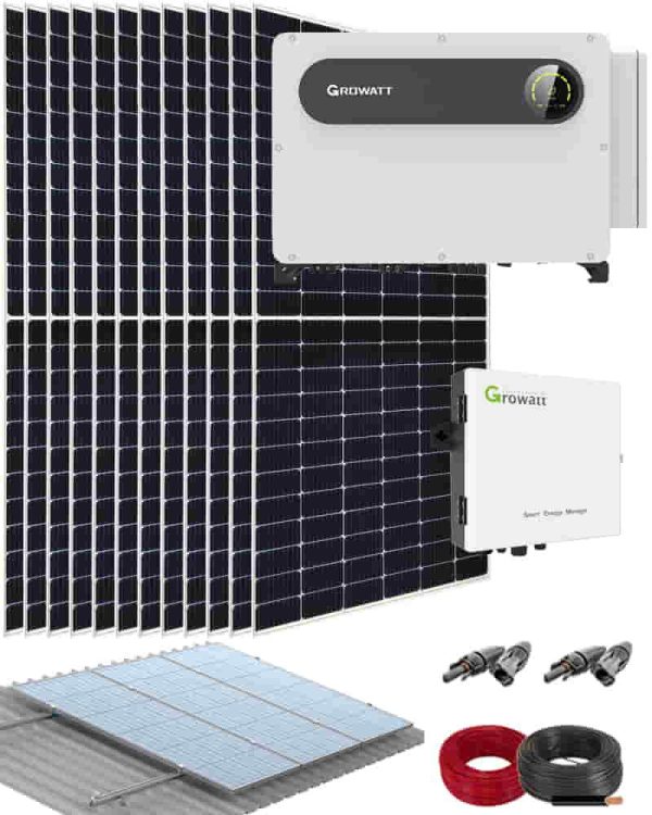 Componentes do Kit Solar de Autoconsumo Industrial 100kW 200.000kWh Growatt Trifásico