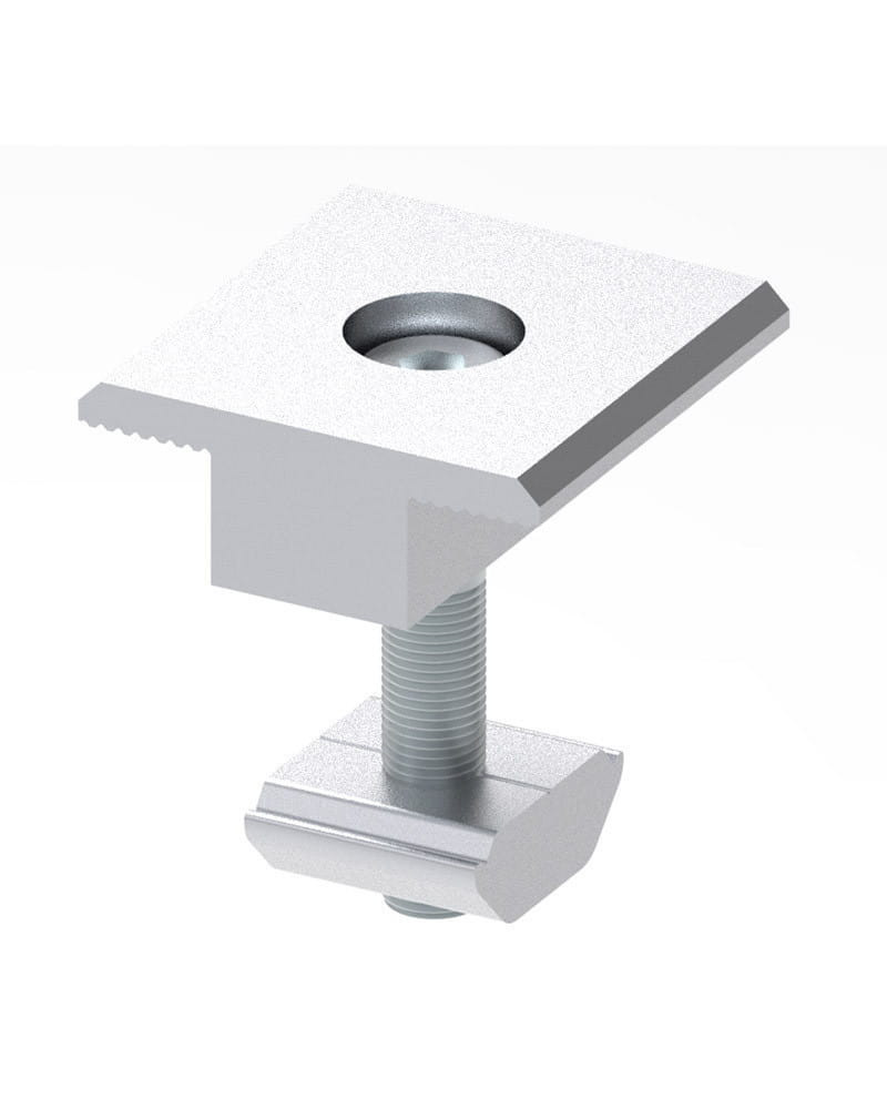 Esta peça suporta a instalação de painéis solares com espessura de moldura de até 45mm . Além disso, todos os componentes desta peça possuem ranhuras antiderrapantes para que os painéis solares fiquem o mais seguros possível no local onde são instalados.